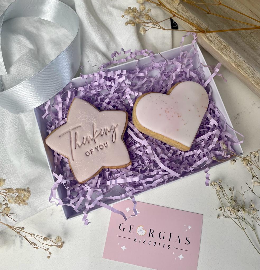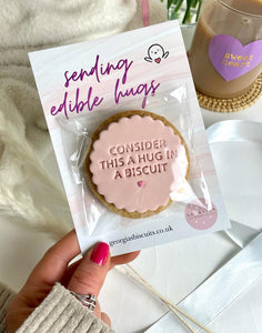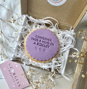 Why not send an edible hug? Pretty and tasty vanilla iced biscuits are the perfect kind of happy post!