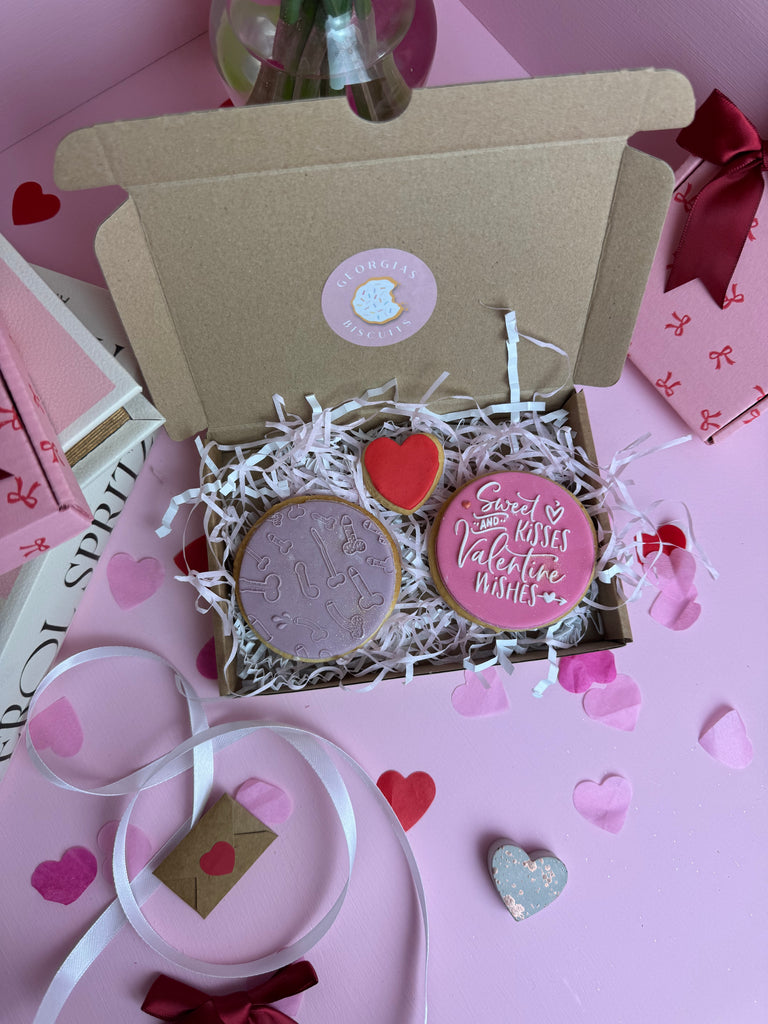 A super cheeky Valentines biscuit gift. Includes x2 vanilla iced biscuits, an optional love letter gift message, gift packaged in a letterbox.